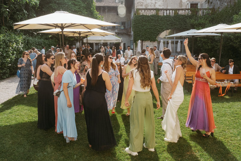 A Lake Garda wedding in the garden of a 15th-century palazzo turned pizzeria – one big vacation with friends, Italian food and techno.